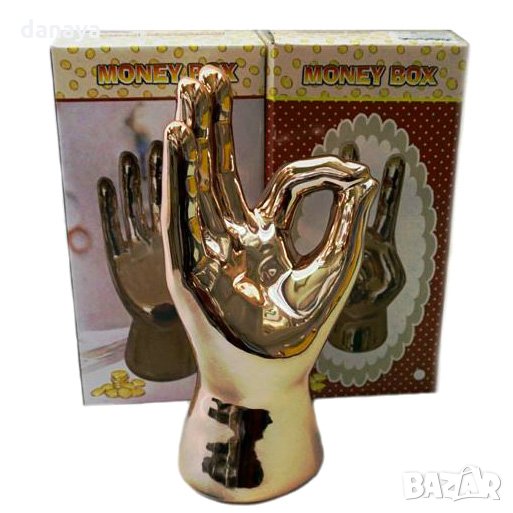 1286 Голяма керамична касичка ръка OK златен цвят → Обява 27264176