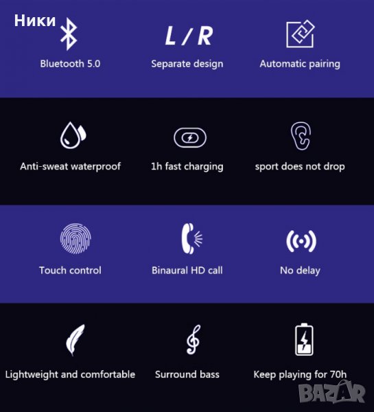 Bluetooth: V5.0 Обхват на предаване: 10 м (свободно пространство)