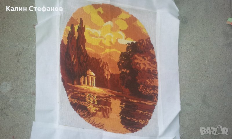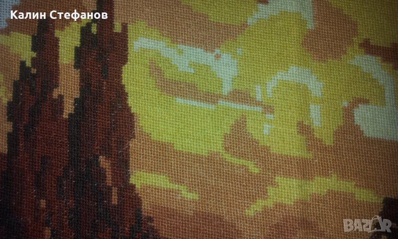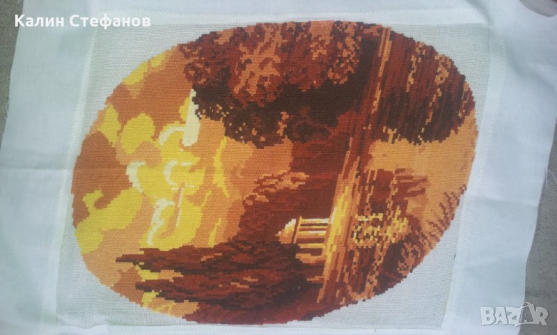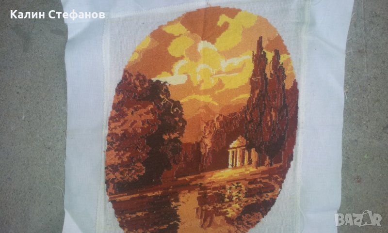 Моля да прочетете внимателно обясненията по обявата и след това да задавате въпросите си. При положение че обявата е активна и всичко ви е ясно, може директно да поръчате без да се губи време с писаници. Гоблена не е поставян. За съжаление е бродирано открай до край и за да се опъне е зашито допълнително ивици. Размерите са на снимките. 96ка. Изпращам само и единствено по Еконт добре