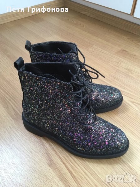 ЛИКВИДАЦИЯ НАЛИЧНИ Черни боти кубинки с брокат бляскави 38 номер → Обява 27269352