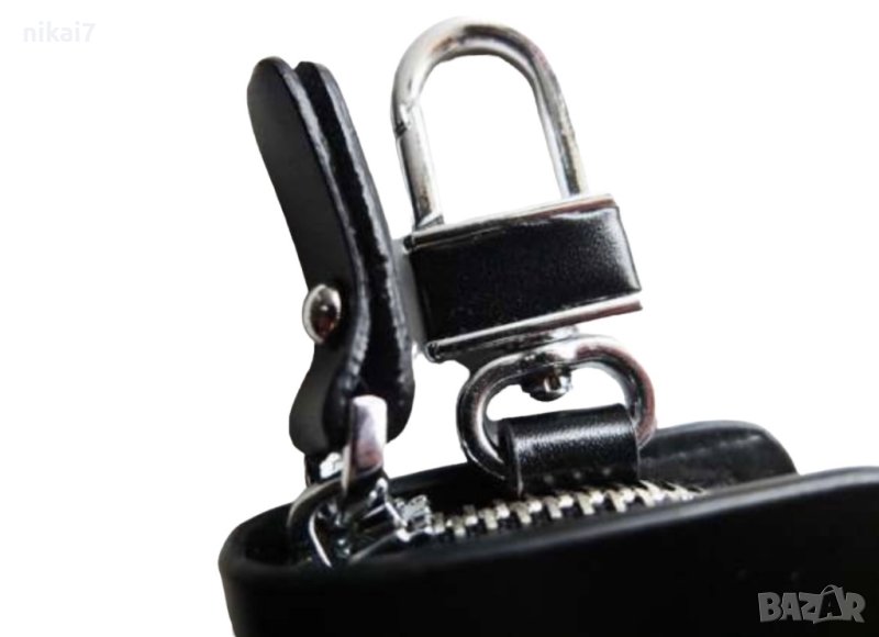 Ключодържателя има цип и метален карабинер може да се щтракне за гайка на панталон или дънки много удобен се ползва