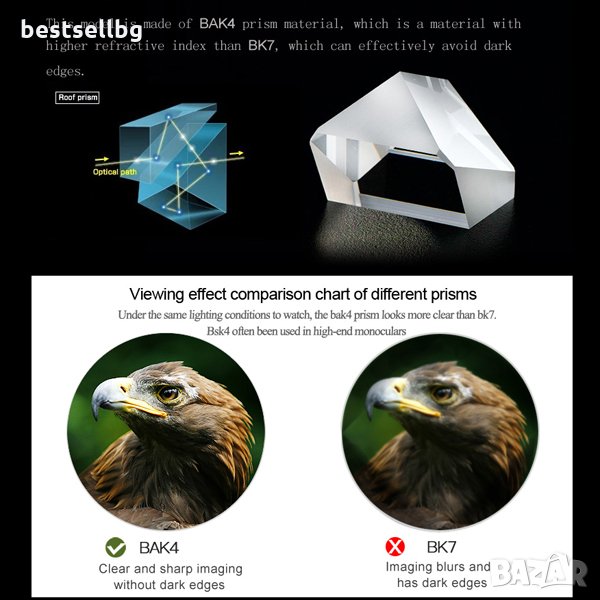 BaK4 призма за ярки и резки образи в цялото зрително поле с висок индекс на пречупване