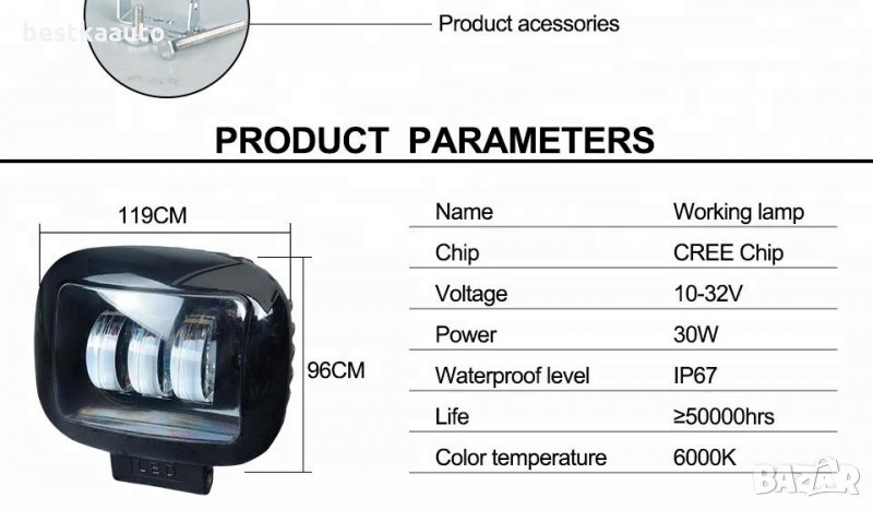 Мощна високо интензивна LED светлина,прожектор, работна лампа 30W LED тип: CREE