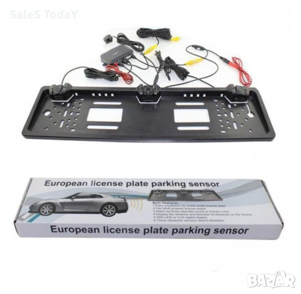 Стойка за номер с камера за задно виждане и паркинг сензор.