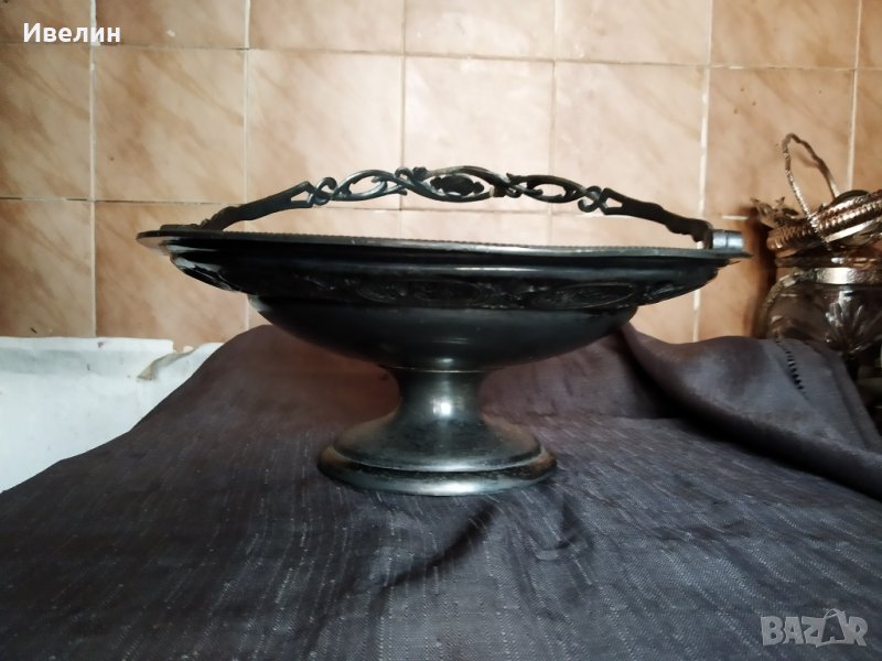 стара барокова купа,фруктиера от цветна сплав/висока е 26см/с вдигната дръжка/.купата е висока 13см,диаметър 27см.забележка на дръжката -на последната снимка.налични маркировки.
