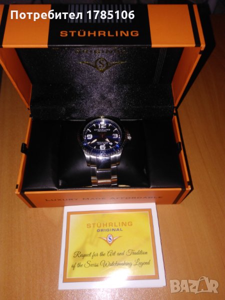 Stuhrling оригинален часовник с швейцарски кварцов механизъм, фосфориращи стрелки и индекси, много красив и превличащ модел