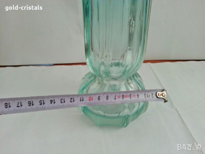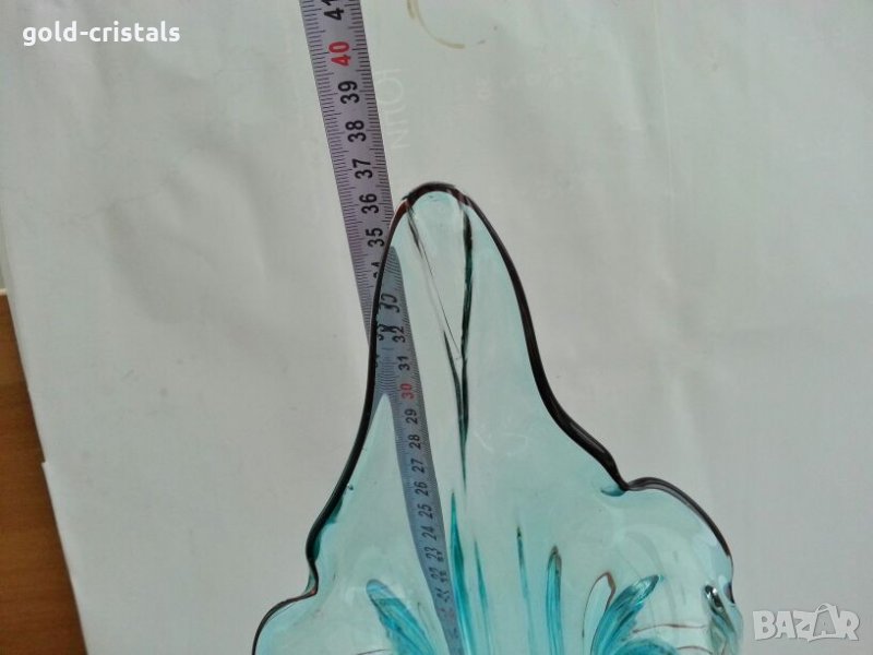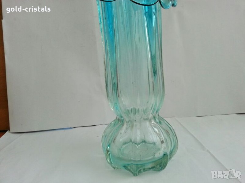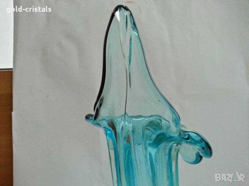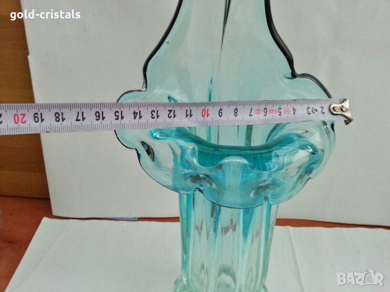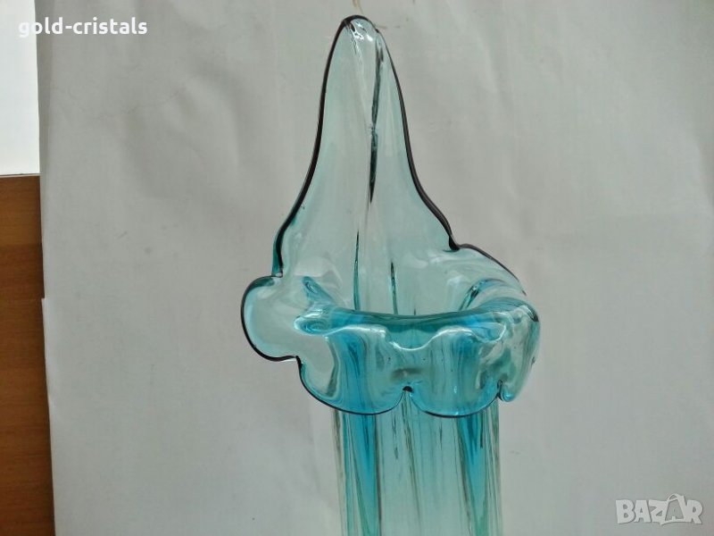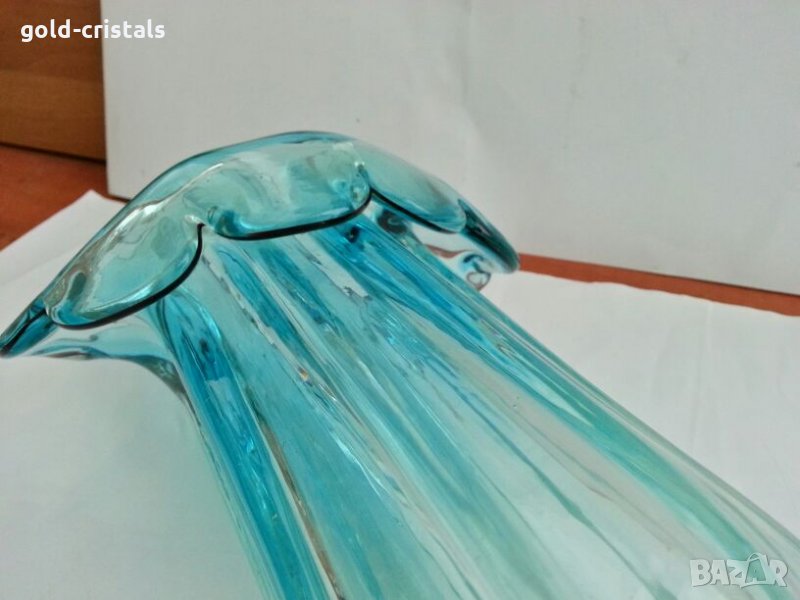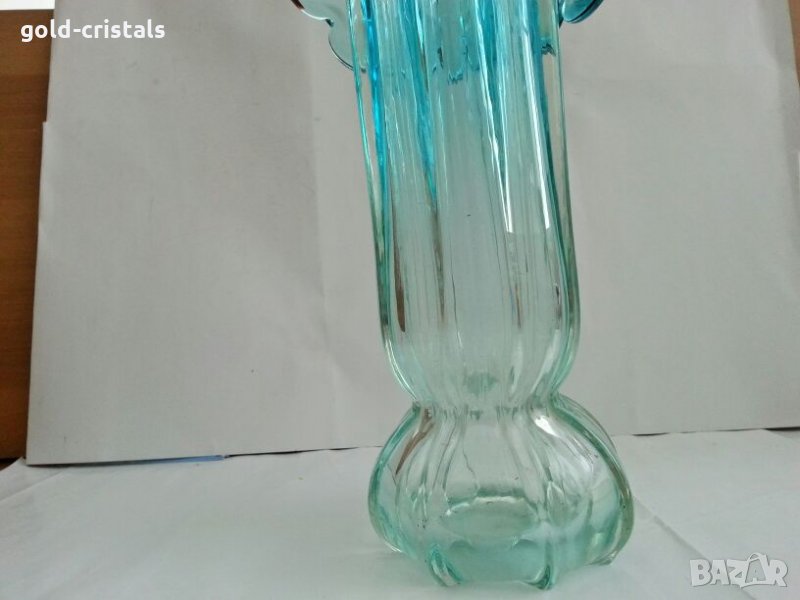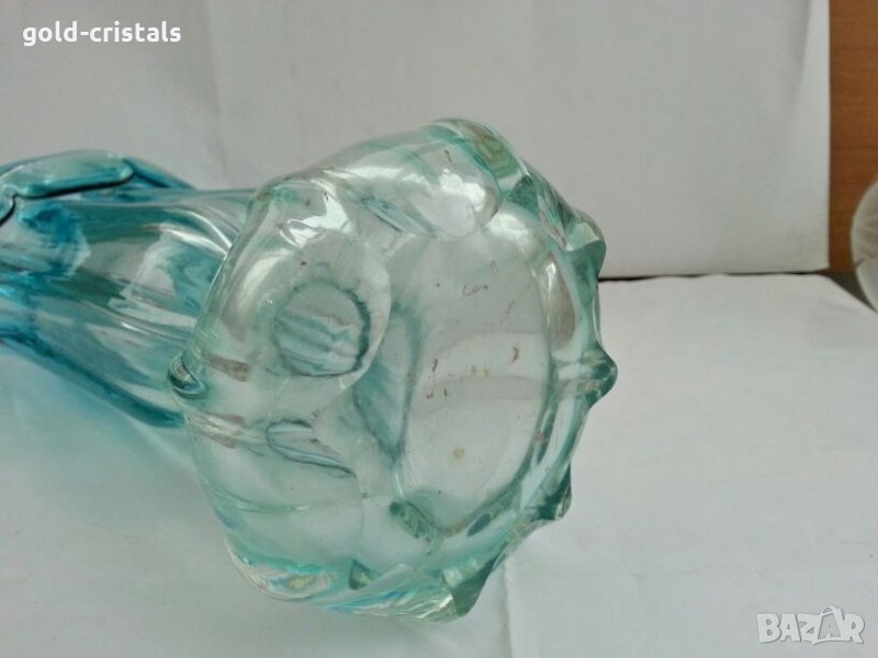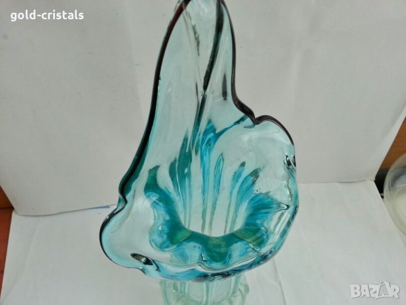 ваза кристално цветно стъкло ръчна изработка преливащ синьо зелен цвят масивна и тежка ретро арт декор винтидж колекция стара старинна ръчна изработка стари антикварни предмети обзавеждане за дома и семейството подходящи за подарък за ценители и колекционери