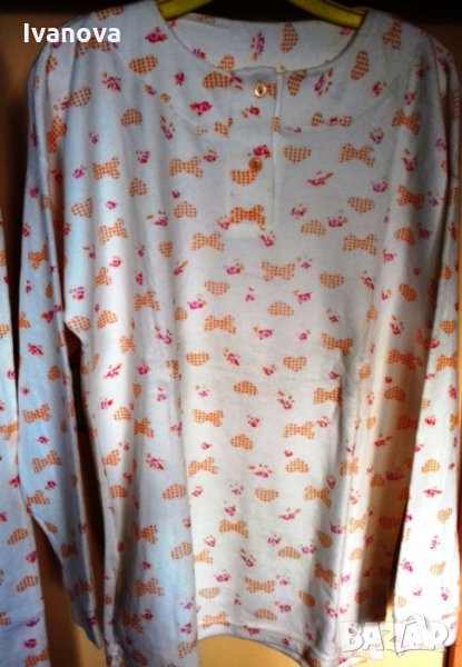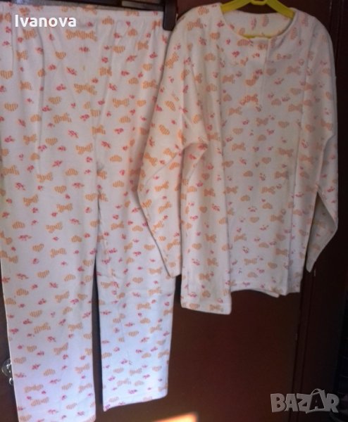 Продавам дамска НОВА ватирана и много топлеща пижама, бял фон със щампа сърца