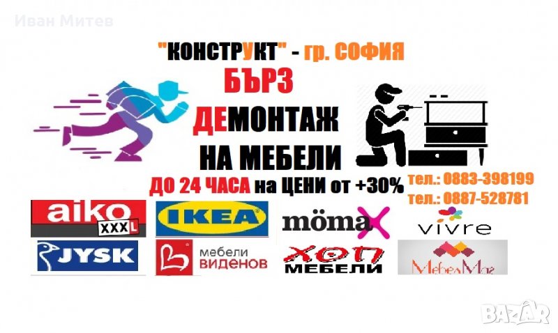 - Демонтаж на мебели в София (разглобяване на мебели);