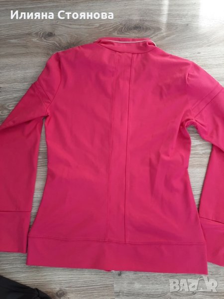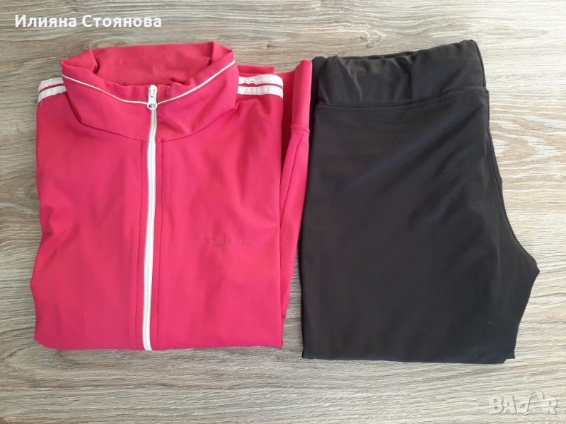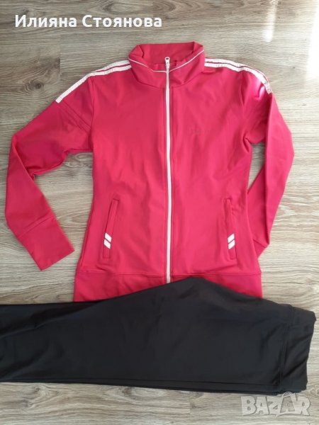 Спортен екип от розово горнище и черно долнище. Цвета на долнището е наситено черен, но на снимките излиза по-светъл. Размер М. Носен е 2-3 пъти, като нов. 35лв. Продаден!
