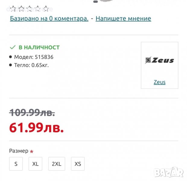 Цена на екипа на сайта 109,99лв.