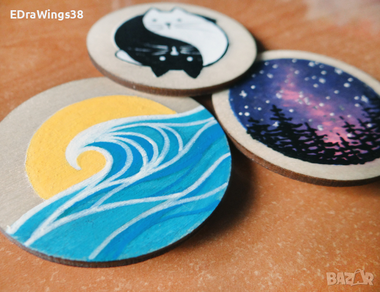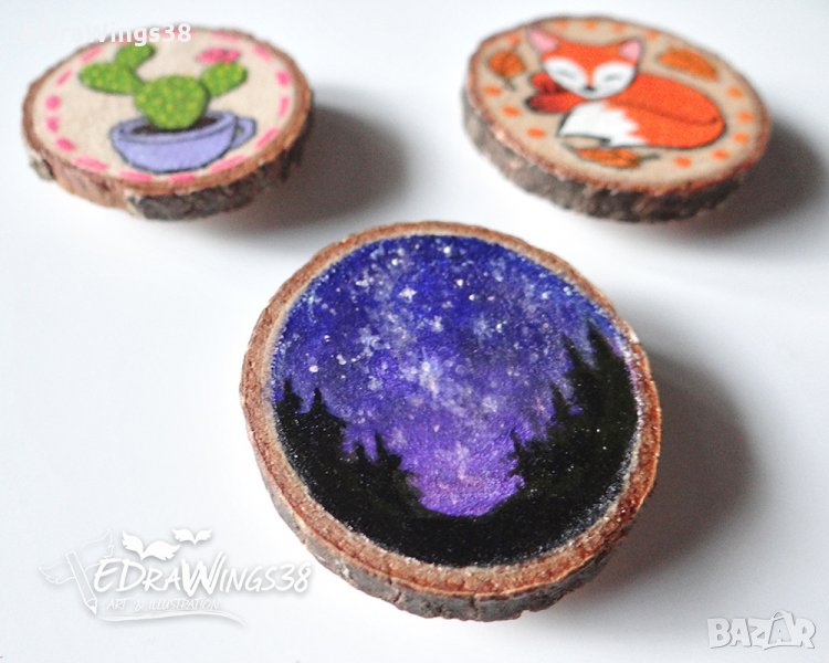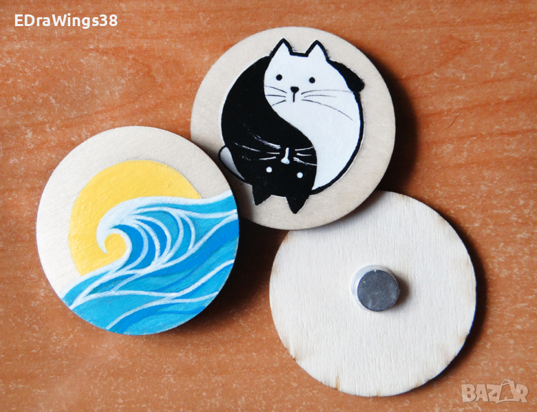 Ръчно рисувани Магнитчета / шперплат, дървени шайби → Обява 27331734