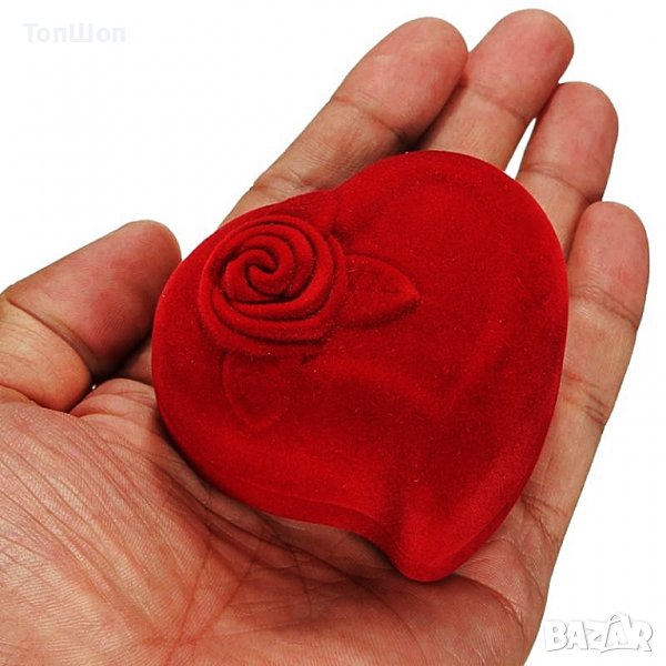 Кутия във формата на сърце украсена с роза за 1 или 2 Сватбени / Годежни пръстена от вътре с бяла подплата . Подходяща е и за сватбени или годежни Обеци / Обици също така !
