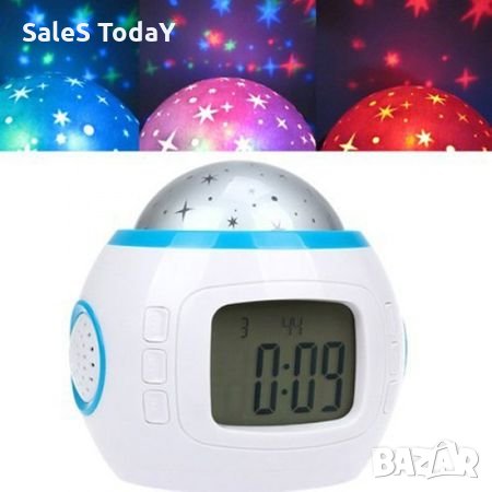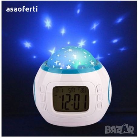ЗВЕЗДЕН LED ЧАСОВНИК ДЕЦА SKY STAR НОЩНА ПРОЖЕКТОРНА ЛАМПА СПАЛНЯ БУДИЛНИК С МУЗИКА ЗА ДЕЦА КОЛЕДЕН ПОДАРЪК