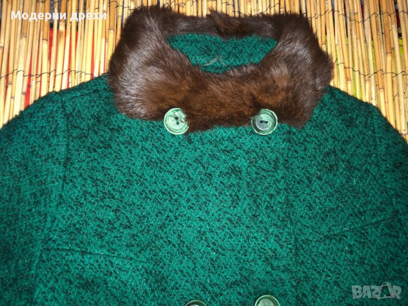 Вълнено палто с яка от естествен пух(норка),дължина-94см.,рамене-38см.,подмишници-51см.ръкави-59см.талия-49см.