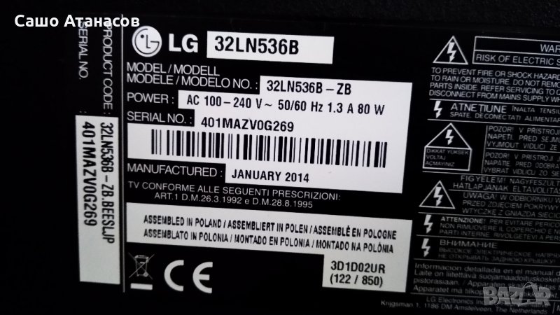Захранване: EAX64905001(2.6) / LGP32-13PL1 - не е налично