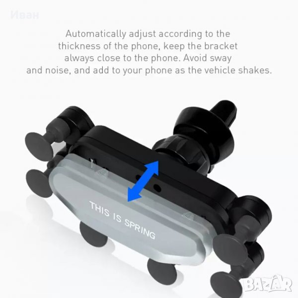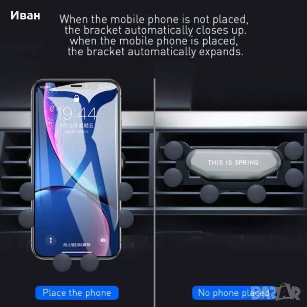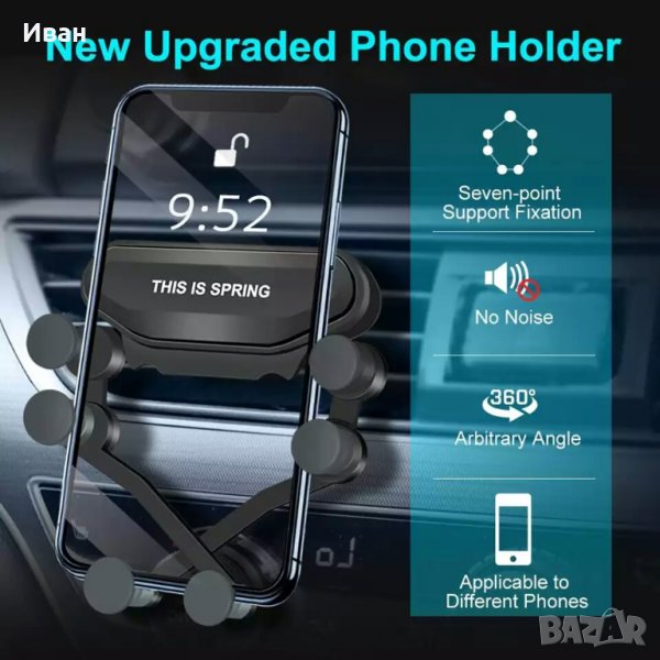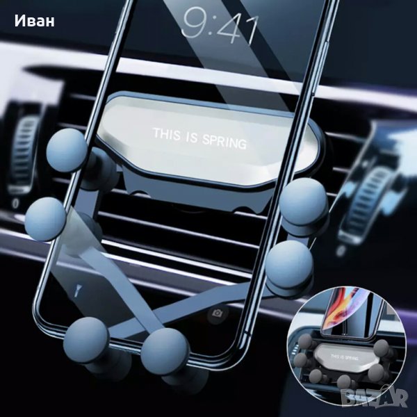 Продавам нов модел сгъваема, черна стойка за смартфон или таблет от 4 до 7.5 инча предназначена за монтаж на решетките за въздуховодите на таблото на автомобила.