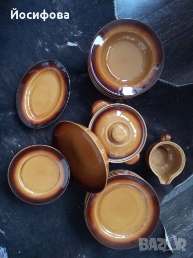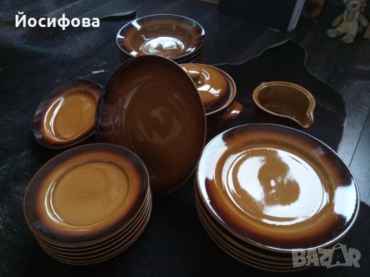 Класически керамичен сервиз от 23 части, особено подходящ за празници и семейни събирания. Малък дефект на каната, видим от снимките.