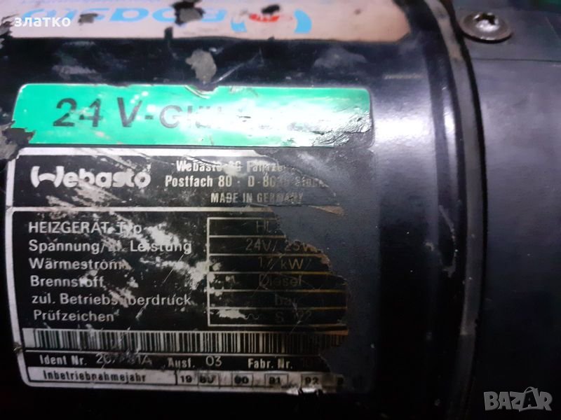 Суха печка за камион 24 волта, липсва свеща и помпата.За части.