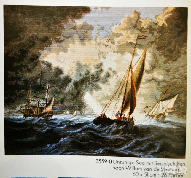 4 снимка - № 3559 - Буря в морето (Unruhige See mit Segelschiffen) - цена 50 евро.