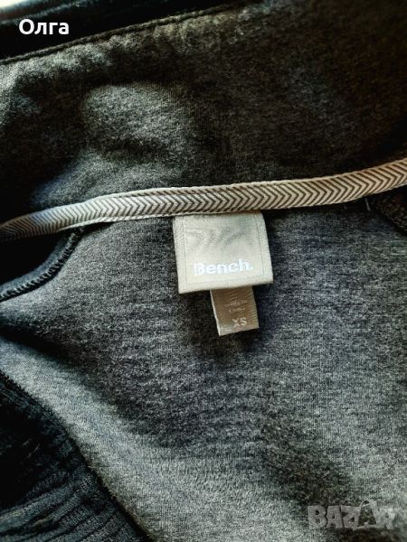 Дамски черен Суичър марка Bench, размер XS, ширина 43 см, дължина 59 см, ръкави 67 см., ширина под ръкавите 45 см. Закопчава се с цип, има 2 джоба. Отлично състояние, без забележки