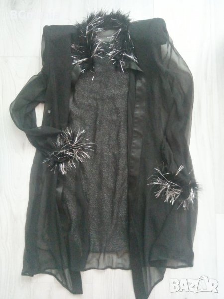 Официална къса рокля с горнище размер С обличана веднъж, роклята е еластична с ламе, горнището е тюлено, пухчетата могат да се махнат