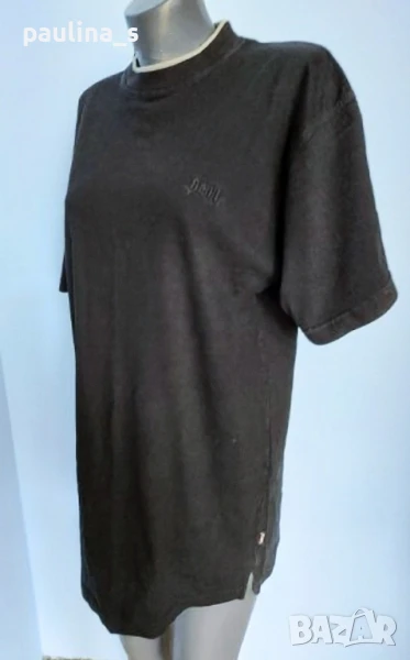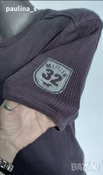 Mustang jeans". Цената е крайна 49,99лв / 24,3 евро. Винтидж / Нова! Една бройка / Страхотна мъжка тениска (облечена на дамски манекен) от плътно и еластично памучно трико, купена е в Триполи, нова. Цветът е тъмно сив. Само изпрана, няма следи от времето и във вид видим от снимките. Уникална дреха, с рядко качество.
