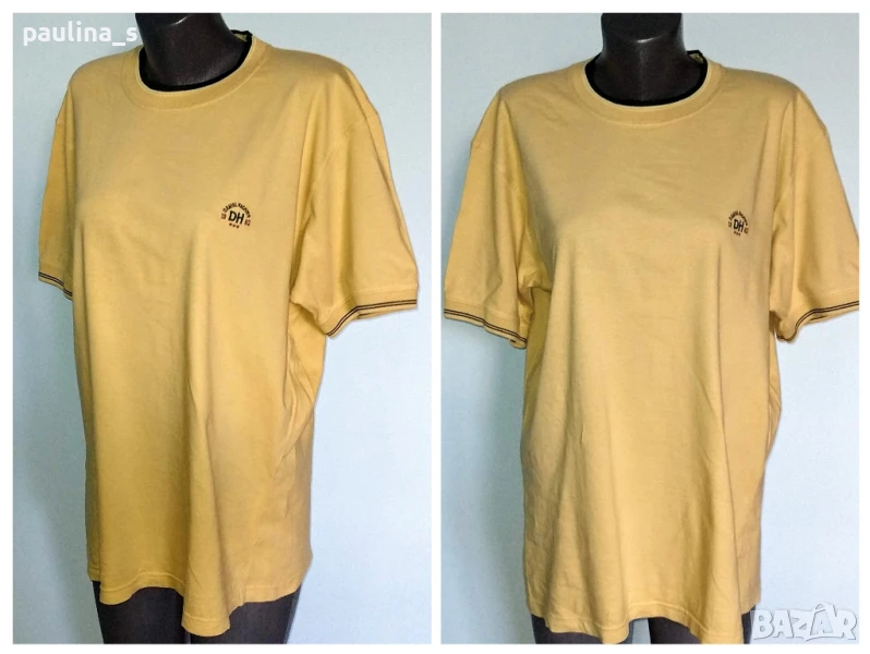 1️⃣ 2XL / 4XL - "Daniel Hetcher". Цената е крайна 24,99лв / 12,3 евро. Брандова тениска от плътно трико с много прецизна изработка, 100% органичен памук, цвят Горчица. Без дефекти. Снимките са реални, но на дамски манекен.