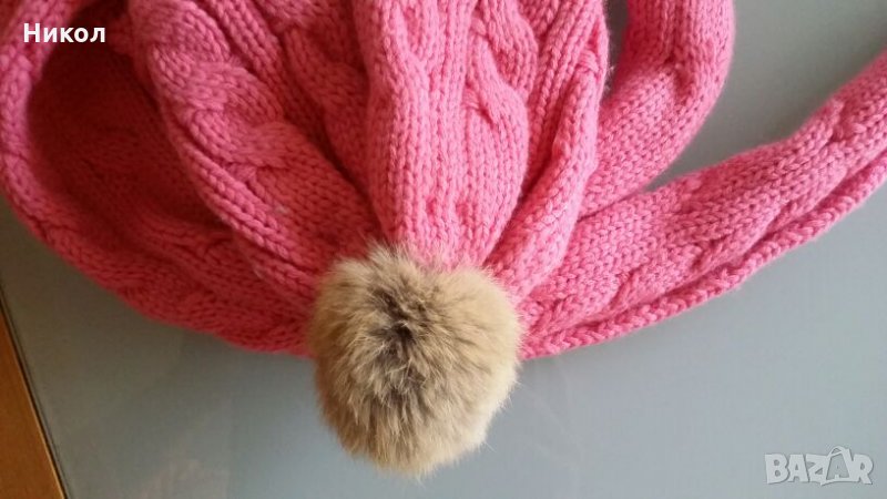 Чистонова шапка-шал.Ръчно плетена от прежда с меко пухче отгоре. Подходяща за момичета от 4 до 7-8 годишна възраст