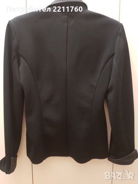 Дамско вталено сако в черно, комбинация плат и кожа. Размер S. Ново. Цена 30лв.