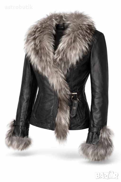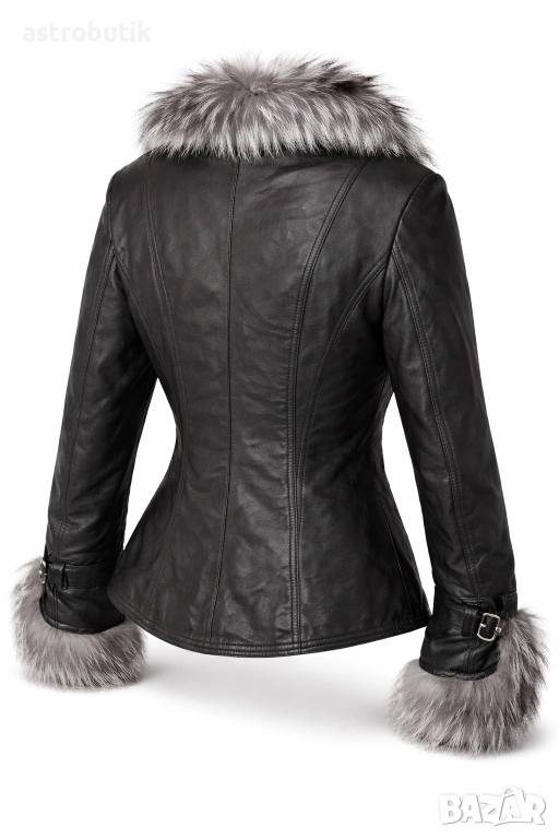Кожено яке с яка от лисица- намаление! → Обява 27387824