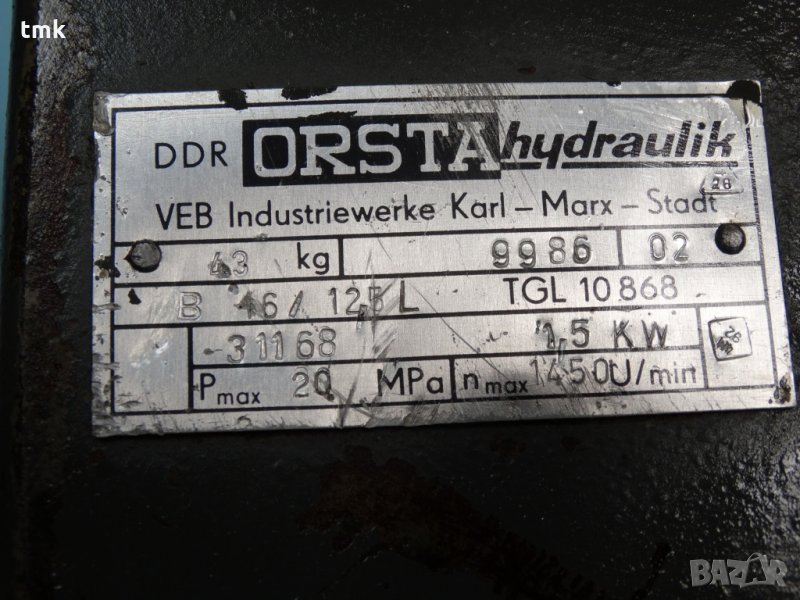 Фирма "Техно Маш Комплект" ЕООД предлага нова немска радиално-бутална хидравлична помпа, производство на ORSTA Hydraulic. Помпата е със следните параметри: