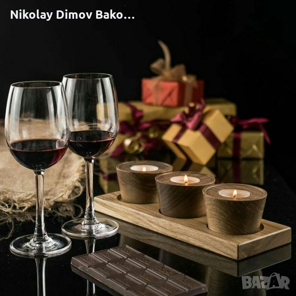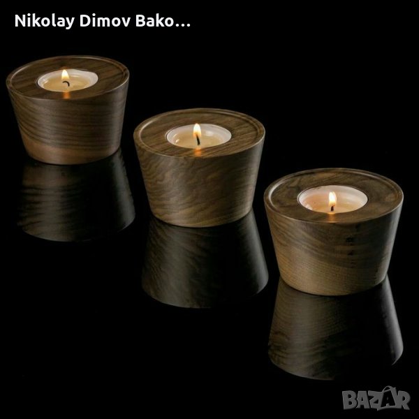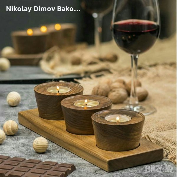 три свещника фиксирани върху дървена основа - 60лв