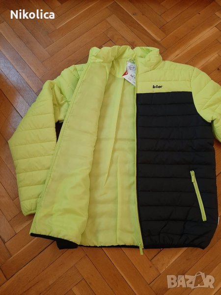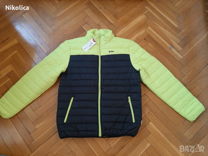 Топло яке с цип и качулка ,съчетание на черно и цвят лайм.Много свежо!На предницата е с два джоба,също с цип и с избродирана марка Lee Cooper.
