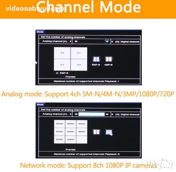 AHD / TVI / CVI / CVBS: 5М-N - 4 Камери в резолюция от 5 Мегапиксела или по-малка