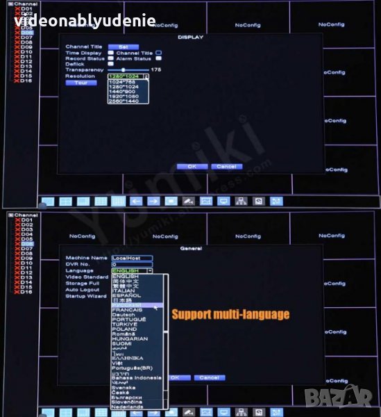 Ресурси на системата: Едновременно многоканално записване в реално време, Възпроизвеждане, Работа в мрежа, USB архивиране