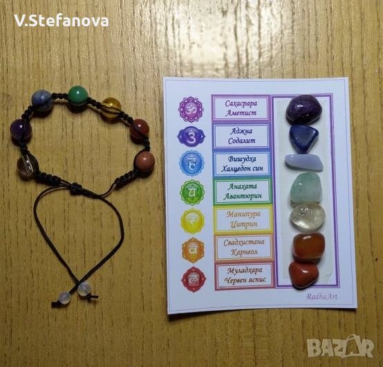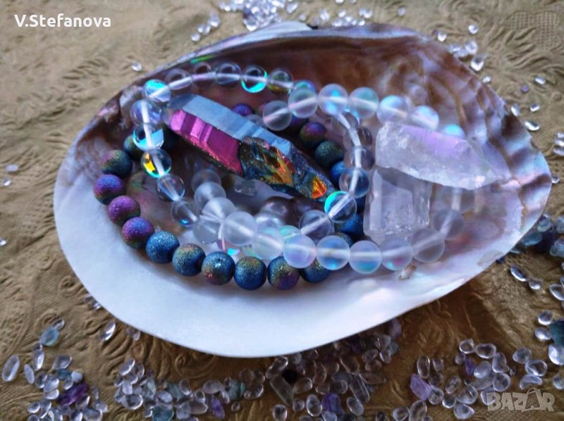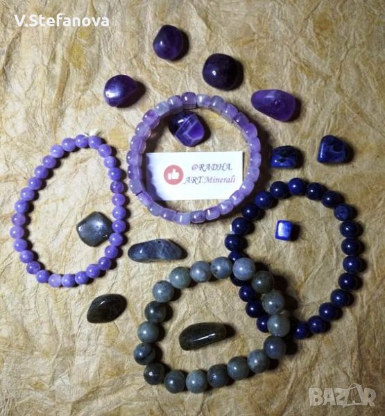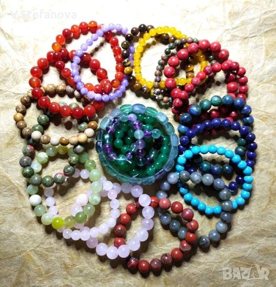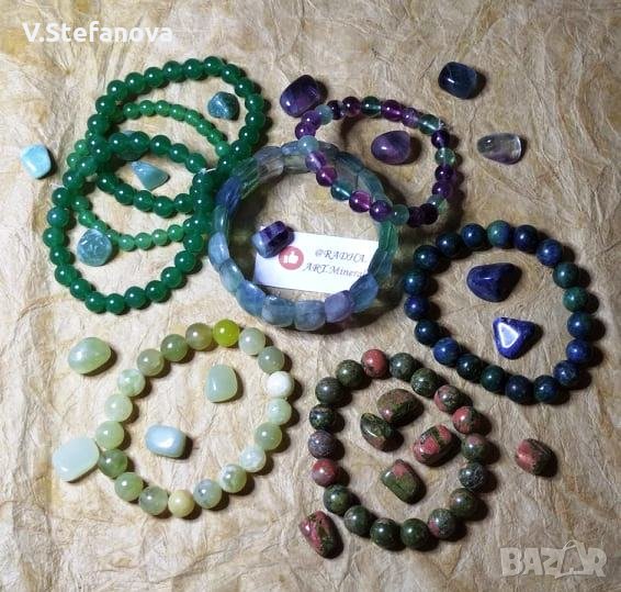 Аметист - 12 лв., ангелска аква аура, авантюрин - 5,6 и 8 лв., жълт авантюрин - 5 лв. ангелит - 10 лв., малахит с азурит - 10 лв., корал 5,6 и 8 лв., лабрадорит- 8 лв., лазурит - 10 лв., нефрит - 7 лв., карнеол - 8 и 10 лв., пейзажен яспис - 5 лв., розов кварц - 4, 5 и 6 лв., тигрово око - 8 лв., тюркиз - 5 лв., унакит - 4 и 6 лв., флуорит - 10 и 15 лв., хаулит - 3 и 4 лв., чèрвен яспис. Гривни "7 чàкри" - 10 лв.