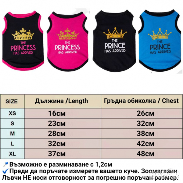 Тениски за домашни любимци Принц / Принцеса