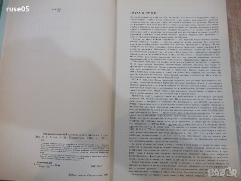 Книга "Энциклопедическ.словарь юного биолога-М.Аспиз"-352стр → Обява 27406959