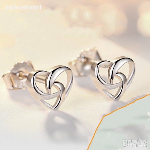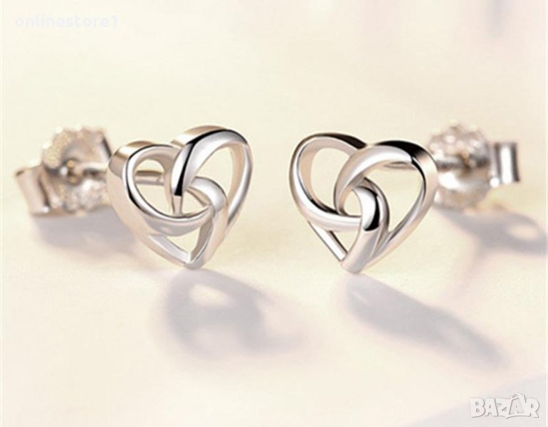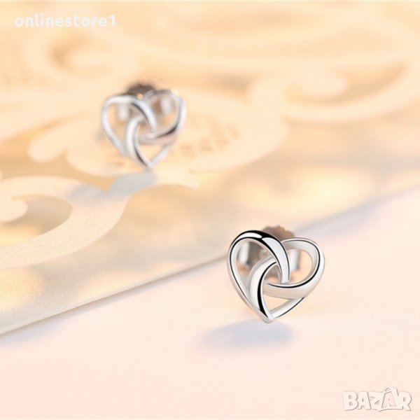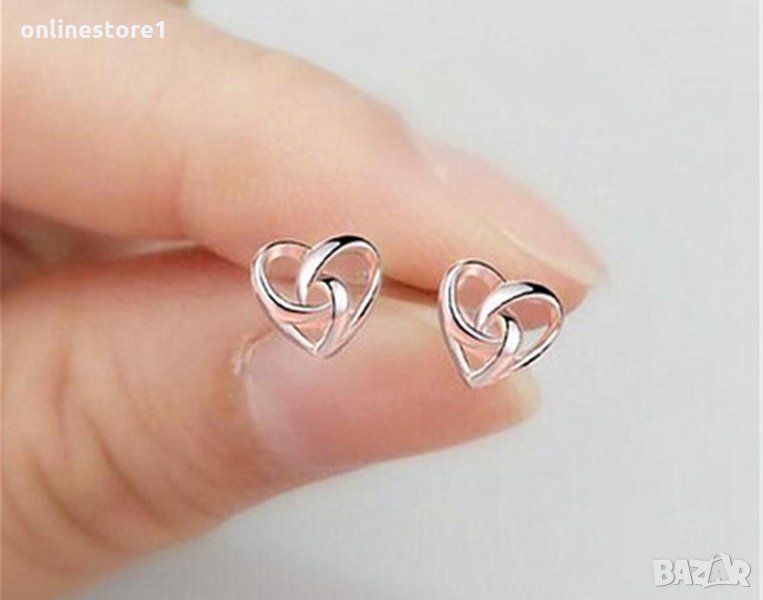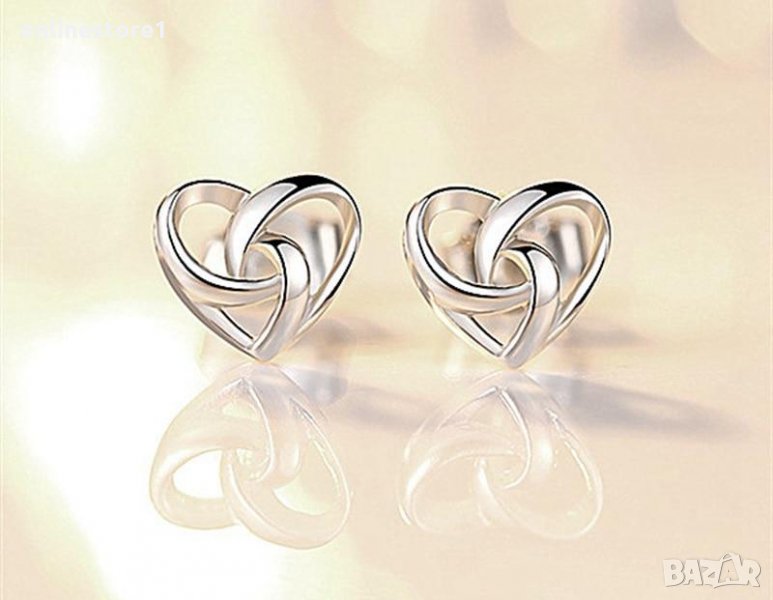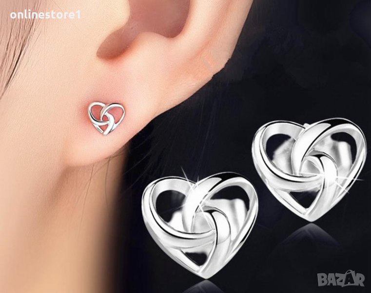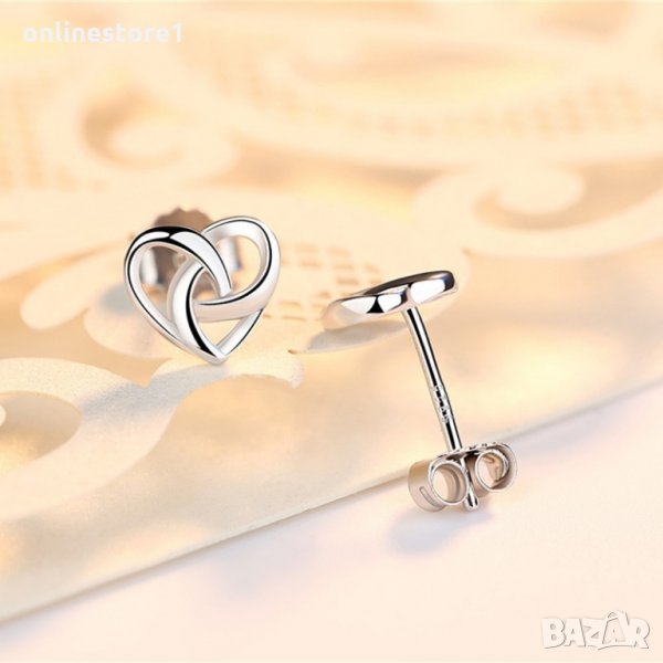 Сребърни обеци - сърце с печат 925 сребро BF130 → Обява 27407436