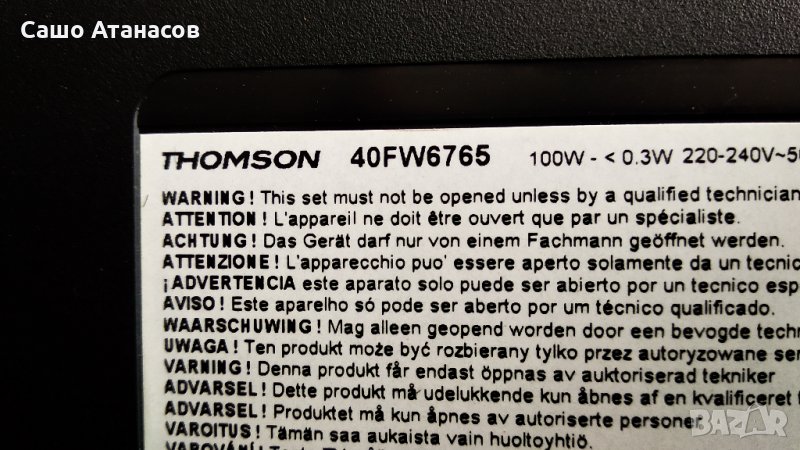 THOMSON 40FW6765 с дефектирала матрица (панел LVF400SE4L SDIW00 V1 / 08-40E5590-LPC001A )
