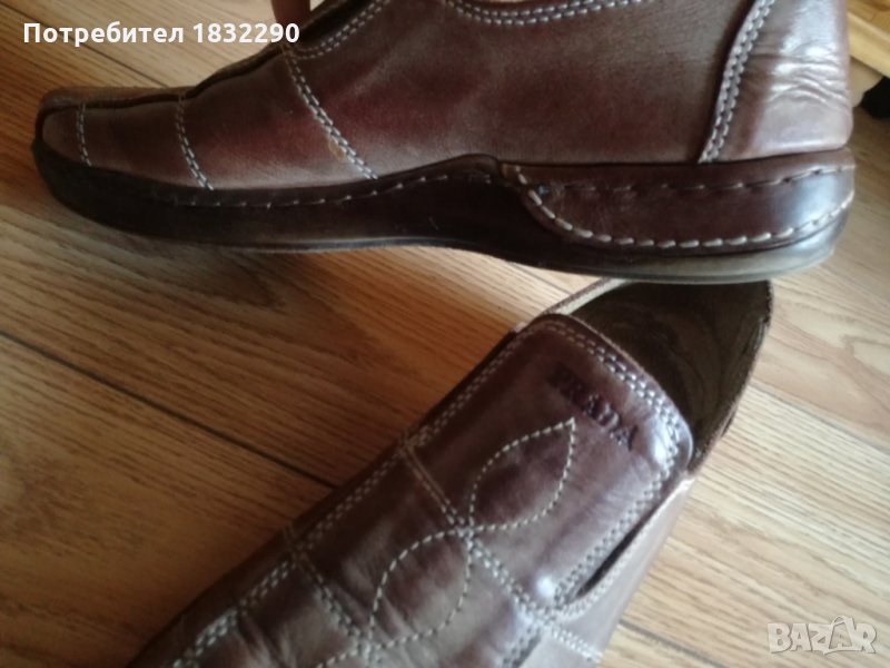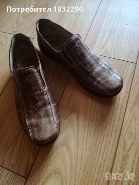 Обувките са от естествена кожа, с ортопедична подметка. Цветът е кафяв. Номерацията е умалена.