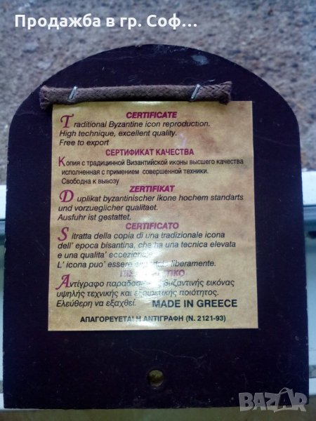 Уникална икона от Гърция със сертификат за качество .Размери 8на9,5см.За ценители.