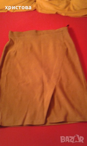 2/Тъмно бежово-кафява поличка ,с предна цепка/имитация че полата е заметната / ,размер-46, дължина-50 см.