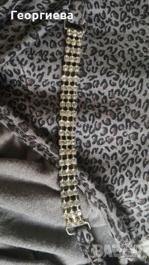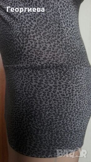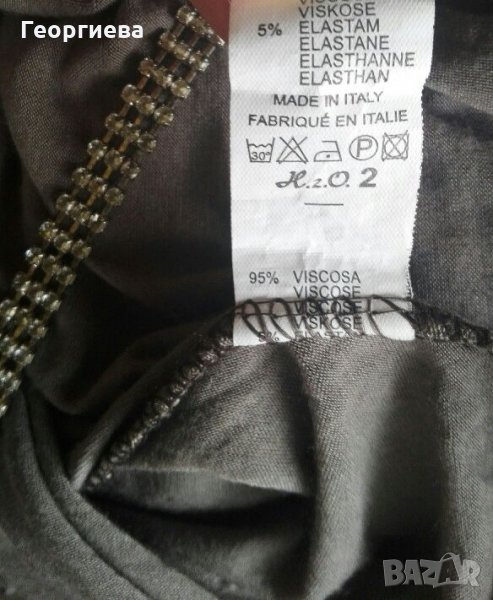 Много елегантна италианска рокличка, на H2O, която може да се носи и като туника.Има голяма еластичност.Цветът е между бежово и сиво(основата), на фигурки в черно и кафяво.