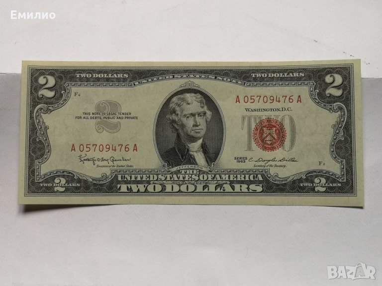 Продавам Рядко Срещани В НЕЦИРКУЛИРАЛО Състояние Банкноти от $ 2 Долара Червен Печат от 1963 год. Късметлийски Банкноти. Подходящи за КОЛЕДЕН ПОДАРЪК или за попълване на колекцията Ви.