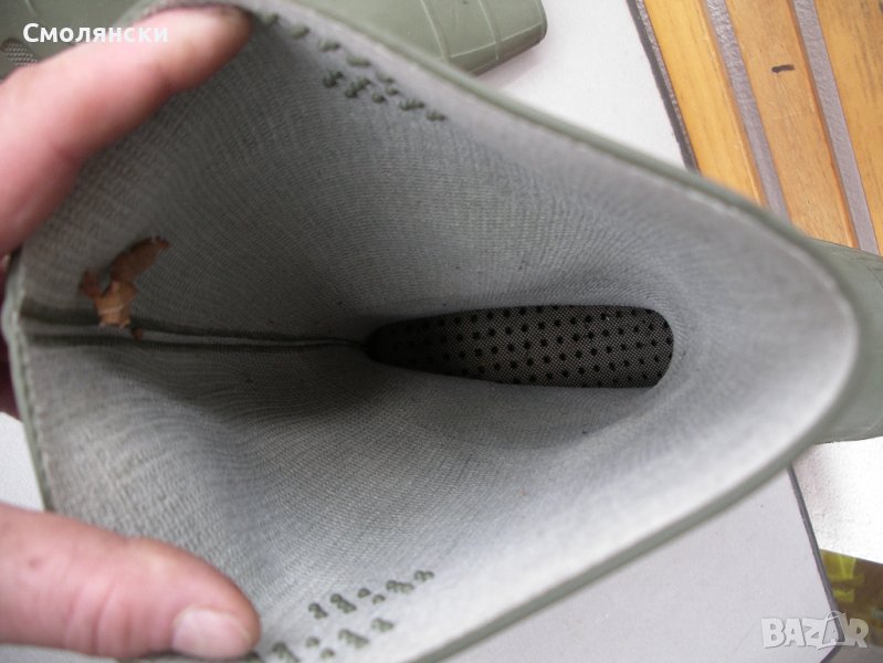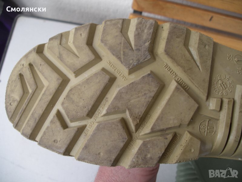 Много здрави ботуши от вулканизиран каучук с двоен борд метално бомбе и неопренова стелка с мрежа отвътре.Перфектни за работа при зимни условия.
