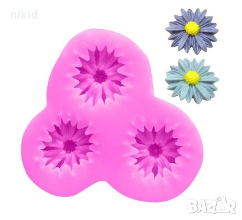 3 маргаритки цветя силиконов молд форма декорация и украса торта фондан бисквитки → Обява 27450026