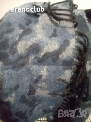 Модерен мъжки шал в модерен син цвят - камуфлажен елемент. Шалът е подходящ за по-хладните дни от годината.