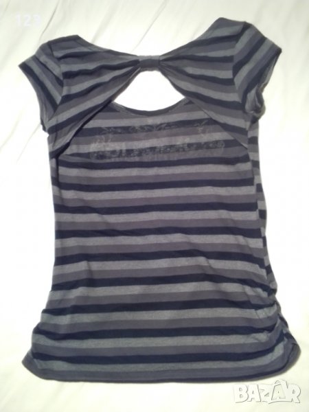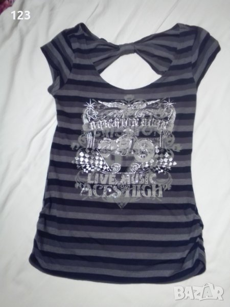 Тениска с интересен гръб, отпред със сребрист мотив с